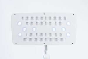 Thiết bị sử dụng công nghệ 8 bóng đèn Blue LED tiên tiến, cung cấp dải quang phổ xanh phù hợp và ổn định. Ưu điểm nổi bật của công nghệ LED là tuổi thọ đèn cực cao 100.000 giờ, giúp tiết kiệm chi phí và đảm bảo hiệu suất điều trị liên tục. Nhờ cường độ ánh sáng tối ưu, đèn giúp chuyển hóa Bilirubin trong máu trẻ sơ sinh một cách nhanh chóng, rút ngắn thời gian điều trị.